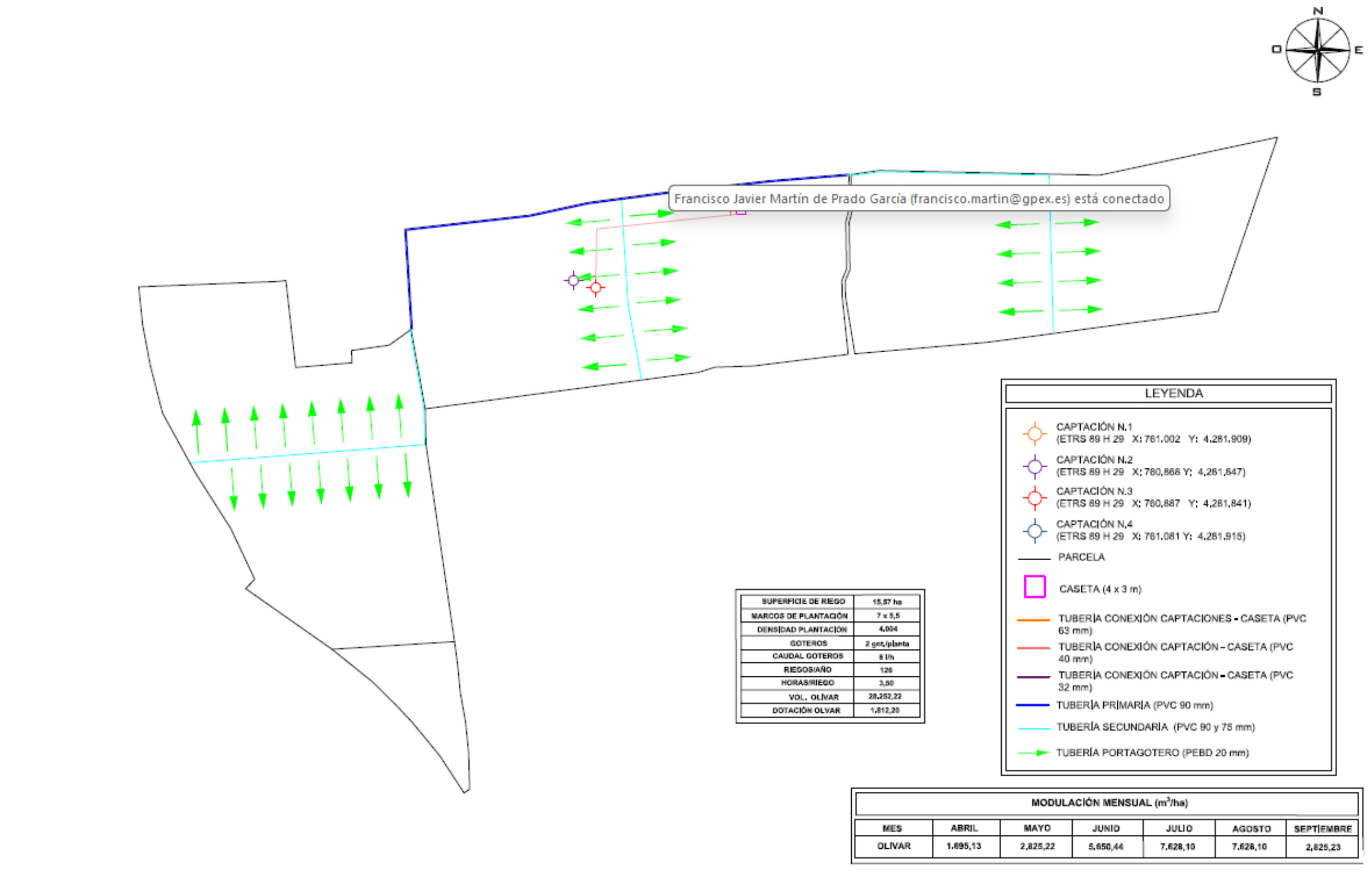 Plano 2: Distribución de las instalaciones de riego (Fuente: Documento Ambiental)