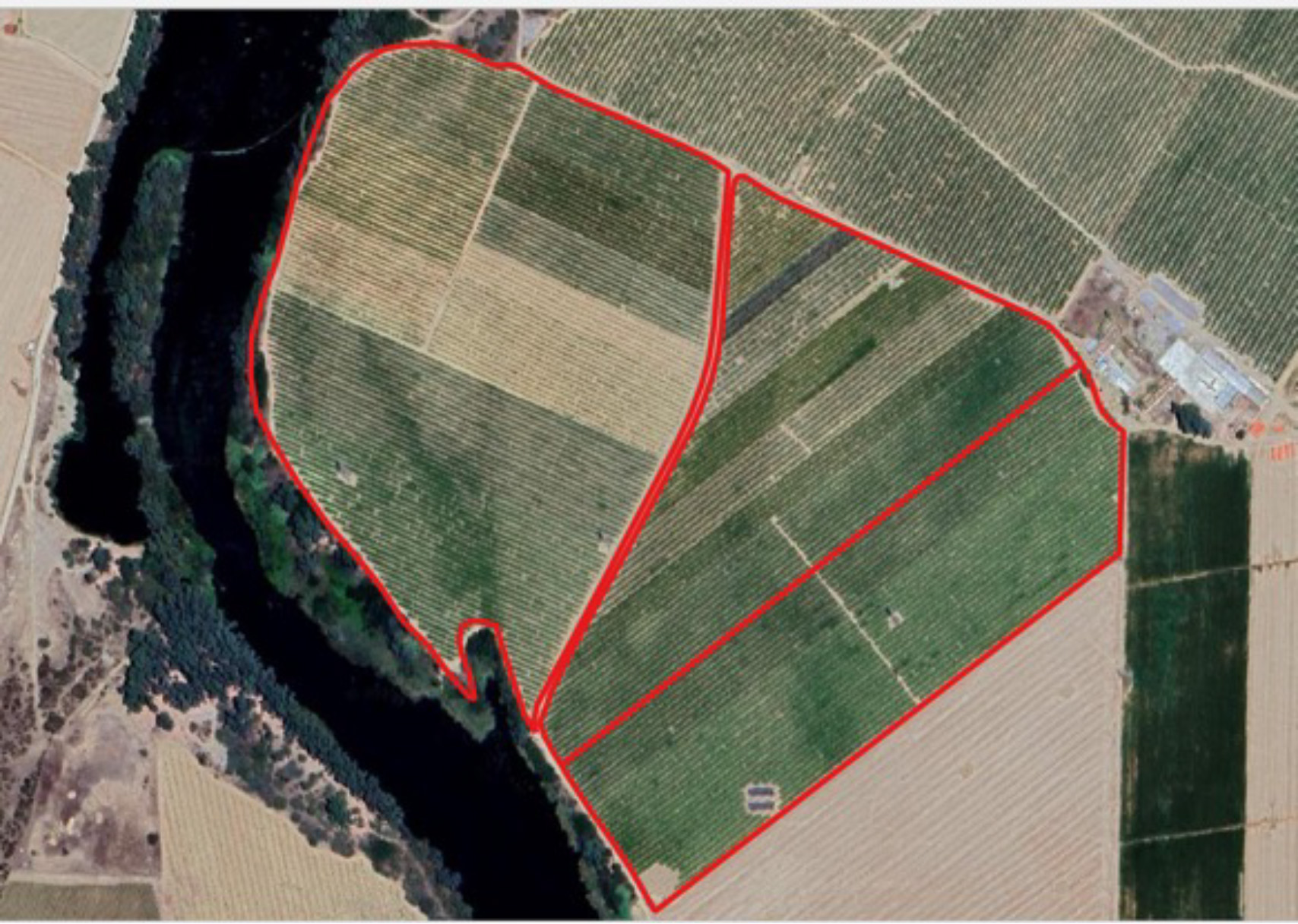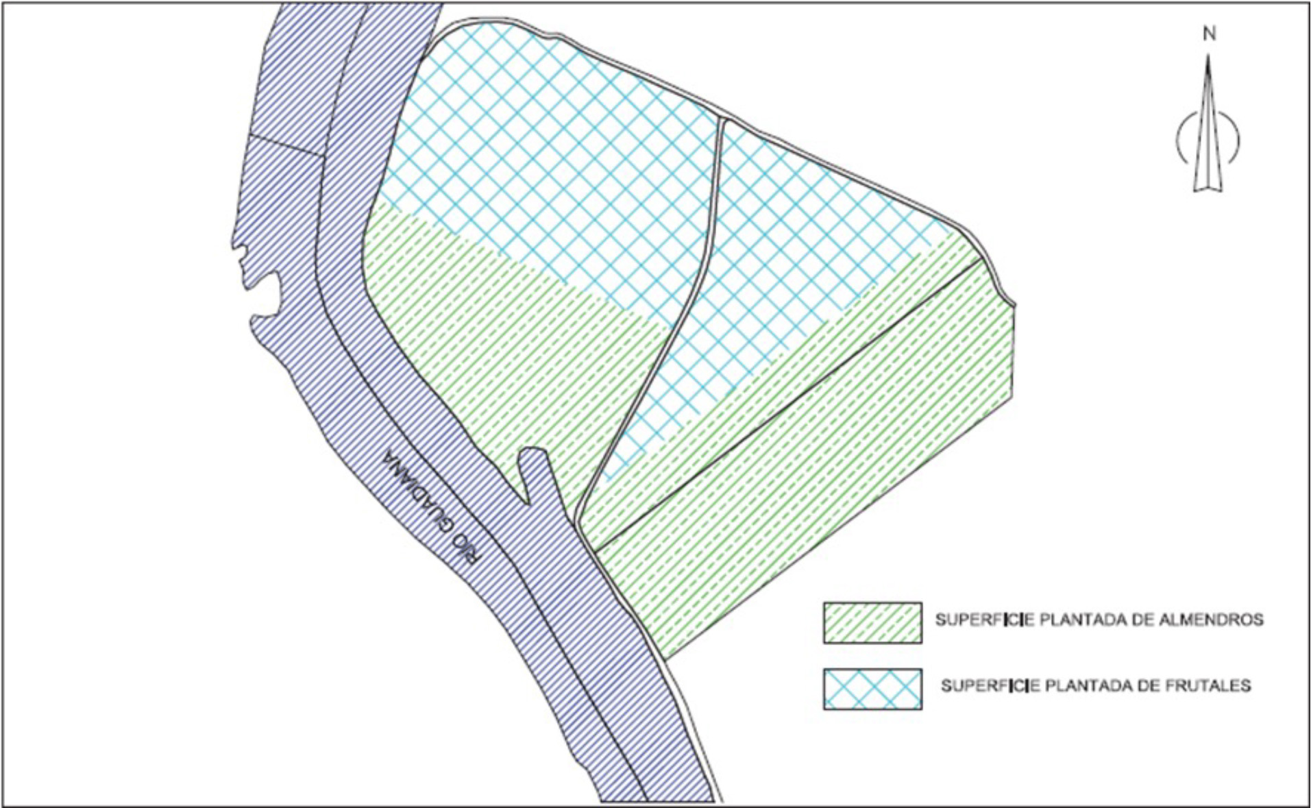 Las parcelas donde se ubica el proyecto se han dedicado durante más de 20 años a cultivos de regadío (maíz, tomate), hasta 2014 se regaba por goteo una superficie de 14,43 ha mediante aguas subterráneas y 24,4822 ha desde una toma de aguas superficiales en el río Guadiana mediante riego por aspersión. Con la presente actuación se pretende regar por goteo toda la superficie, plantada de frutales y almendros, gracias a la modificación de la concesión de aguas superficiales tramitada ante el órgano de cuenca con n.º de expediente CONC. 2327 (371/2021), abandonando la utilización de las aguas subterráneas.