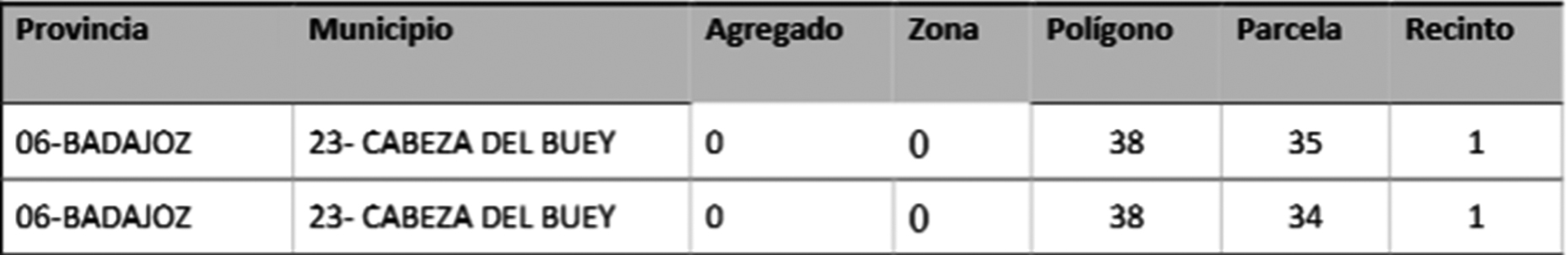 Las parcelas solicitadas son las siguientes: