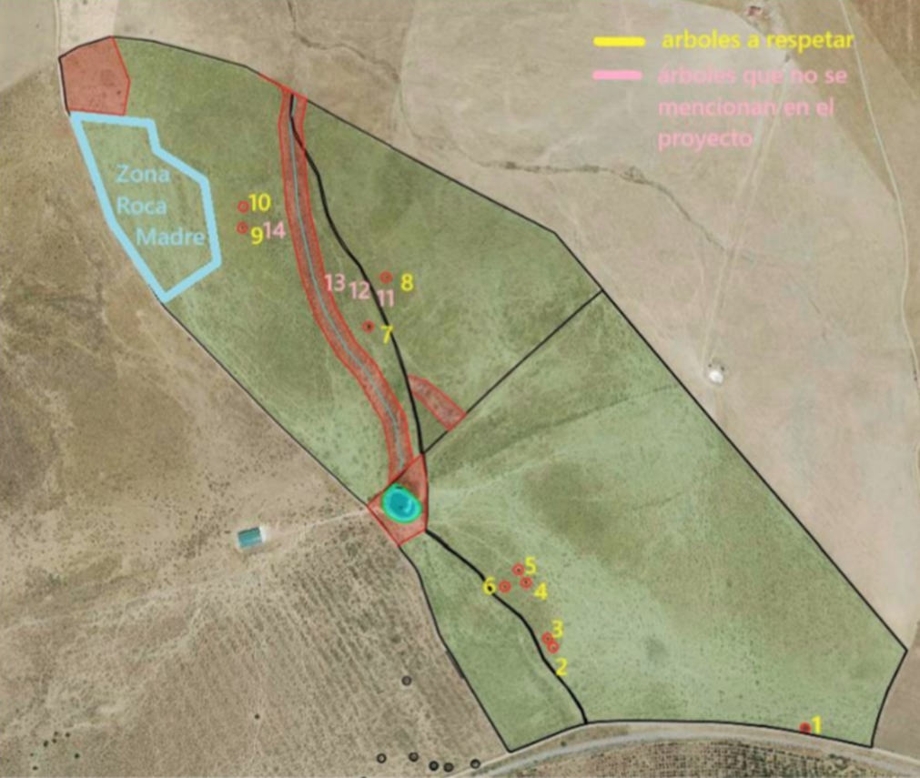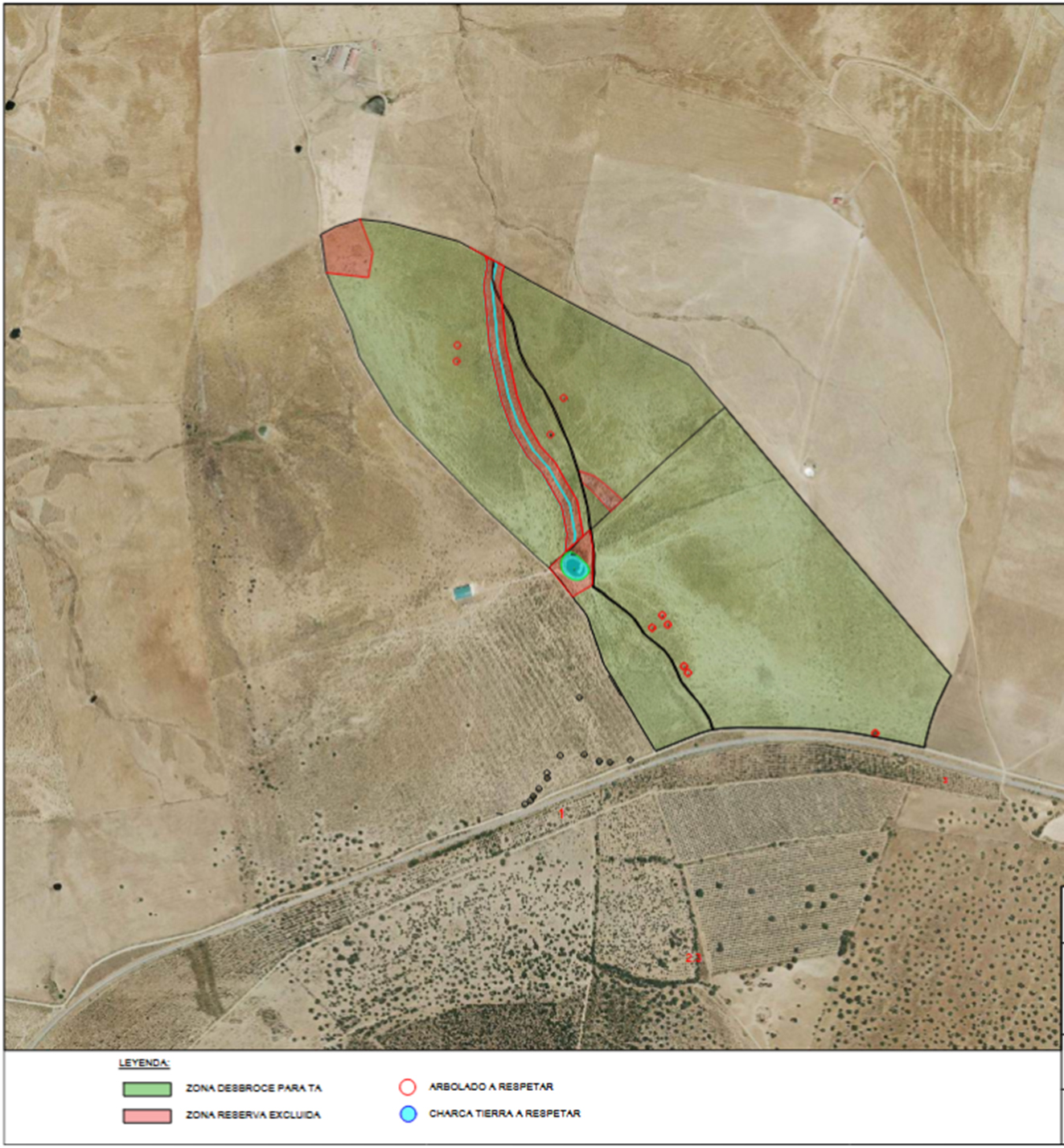 Los trabajos se harán dentro del perímetro definido en el plano, para evitar daños a la vegetación del entorno y destrucción de vegetación asociada a fauna de interés. Se respetará una franja de 20 metros a cada lado del arroyo de la Sorianilla, así como otras zonas donde hay presencia de afloramientos rocosos. Se respetará todo el arbolado (diámetro superior a 15 cm) y el regenerado existente (de encina y acebuche) de altura superior a 1,5 m. Las matas de altura inferior también se respetarán siempre que no haya otra mata a respetar en un diámetro de 10 metros. Se mantendrán los márgenes de las aguas corrientes o estancadas, en una franja de unos 20 metros a cada lado. Esta zona permanecerá en el estado actual a modo de corredor ecológico para la fauna.