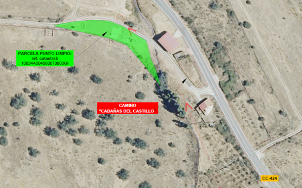 El terreno es propiedad del Ayuntamiento de Cabañas del Castillo y está localizado a las afueras de la localidad de Retamosa de Cabañas, próximo a la carretera CC-424 en la parcela 7 del polígono 4, paraje La Fuente, con referencia catastral 10034A004000070000GI. Esta parcela tiene una superficie total de 1.042 m2, de los que el punto limpio ocupará 220 metros cuadrados.
