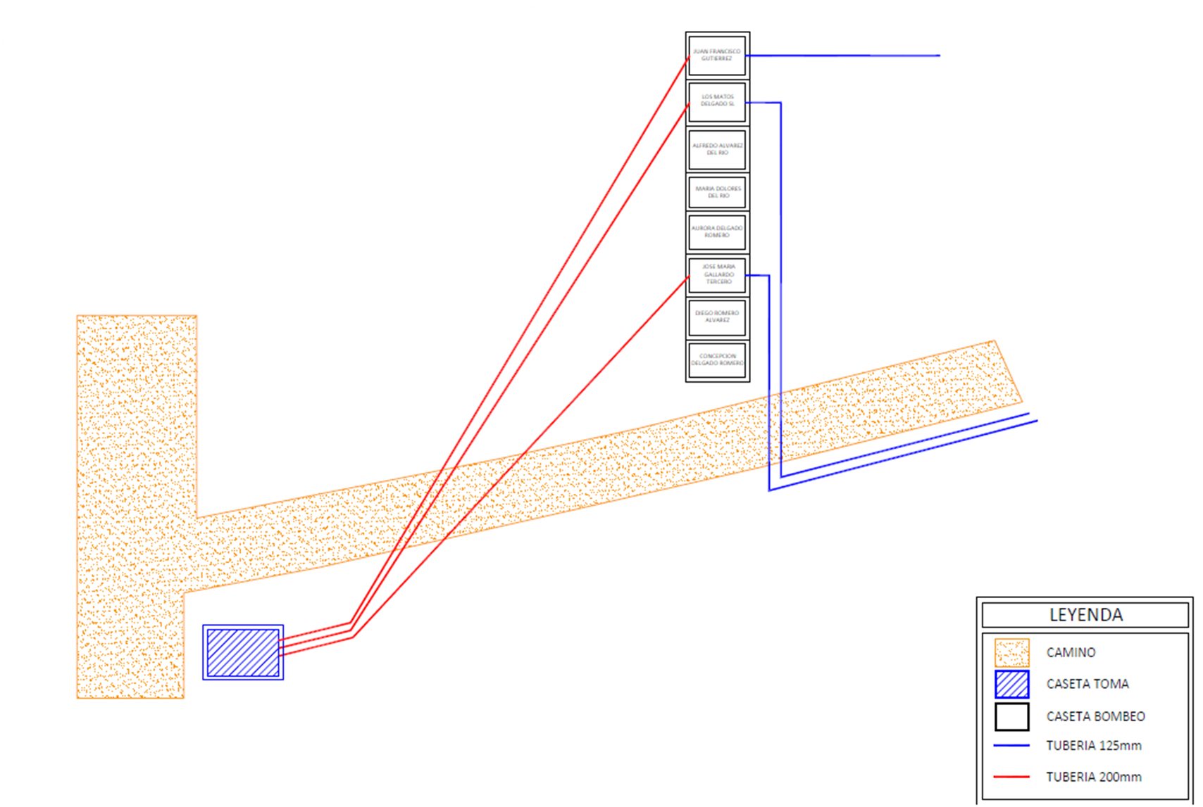 — Tubería conexión toma-caseta de bombeo: PVC 200 mm.