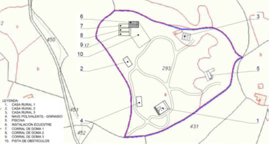Para el desarrollo del mismo, se plantea un conjunto de edificaciones en las que la actividad principal trata de la cría de caballos de raza, y la práctica ecuestre, permitiendo el alojamiento en las instalaciones de la finca, en las que se proponen dos edificaciones anexas tipo casa rural, constituyéndose un conjunto de tres módulos de alojamiento, en el que se incluye la vivienda originalmente autorizada.