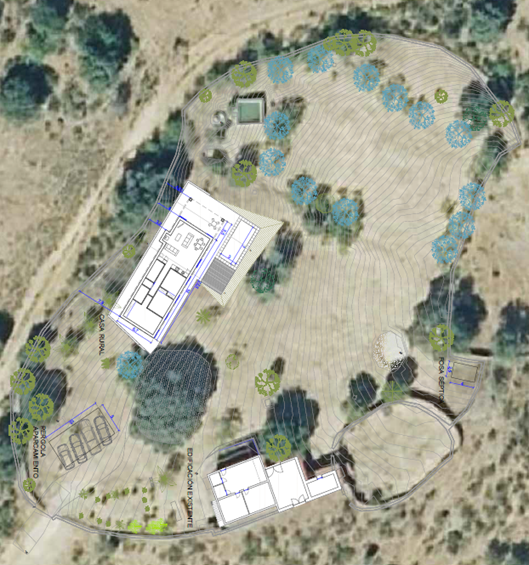 — Se crearán y/o mantendrán pantallas vegetales, implantando especies arbóreas y/o arbustivas autóctonas alrededor de las edificaciones, a fin de minimizar el impacto paisajístico y de conseguir un entorno más naturalizado que el existente en la actualidad. Las plantaciones se realizarán en bosquetes, evitándose formas y marcos regulares.