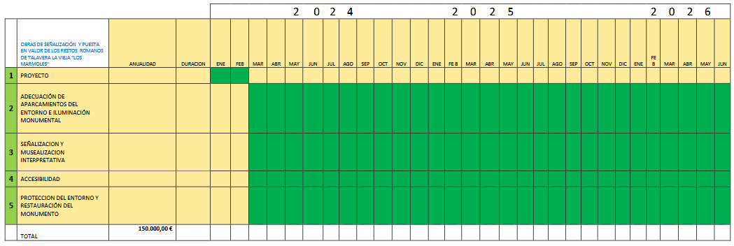 A modo de resumen, se establece el siguiente calendario de ejecución:
